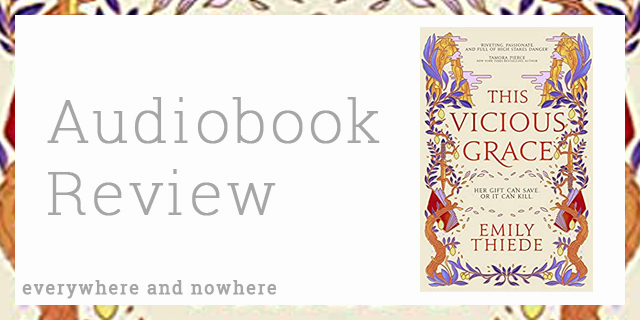It has been too long since my last audiobook, but what a good story to get back into them with. This Vicious Grace appeared to have all the right elements for a book that I would enjoy, a fantasy book with magic, the need for survival, and some political intrigue, which it definitely delivered on. It also has a really interesting setting, there are strong Italian influences in the book, or maybe ancient Roman influences is more accurate, but whichever, it helped conjure the atmosphere of Saverio clearly and easily.